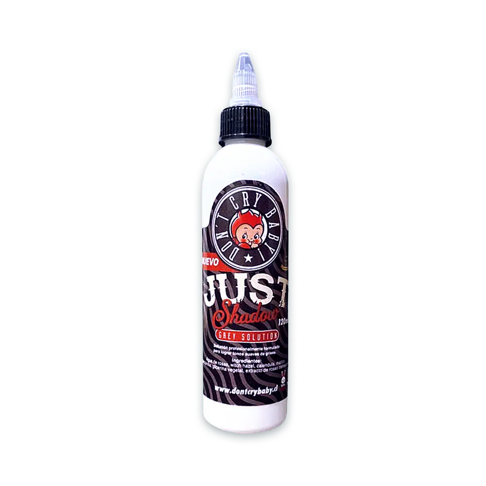 Solución líquida especialmente formulada para lograr tonos de grises suaves con menor irritación. Su fórmula equilibrada de Wish Hazel, agua de rosas, glicerina vegetal y extractos naturales hacen de JUST SHADOW el aliado perfecto para tus tatuajes “black and grey”.